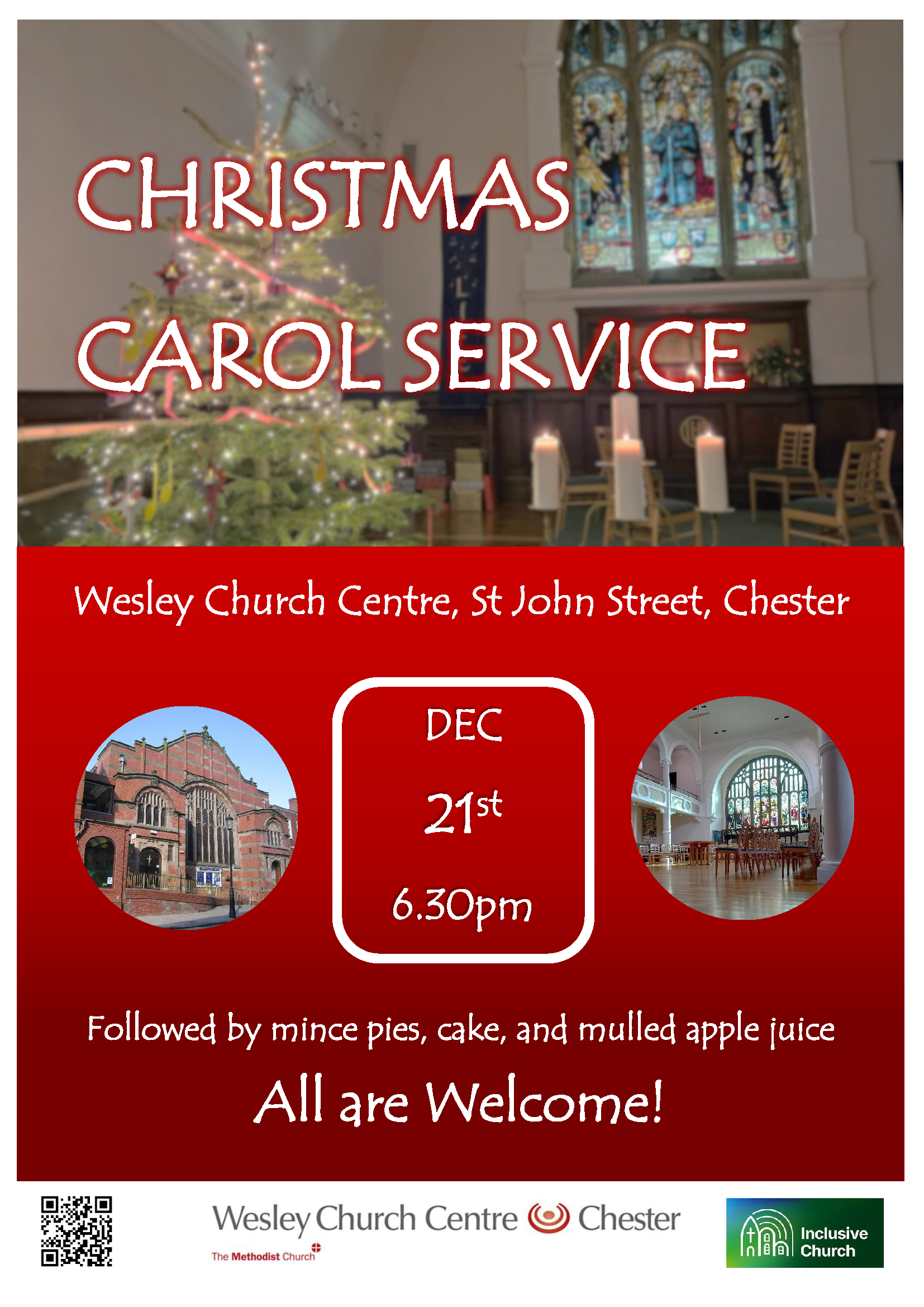 Carol Service Sunday 21st December 6.30pm Followed by mince pies, cakes, and mulled apple juice. |