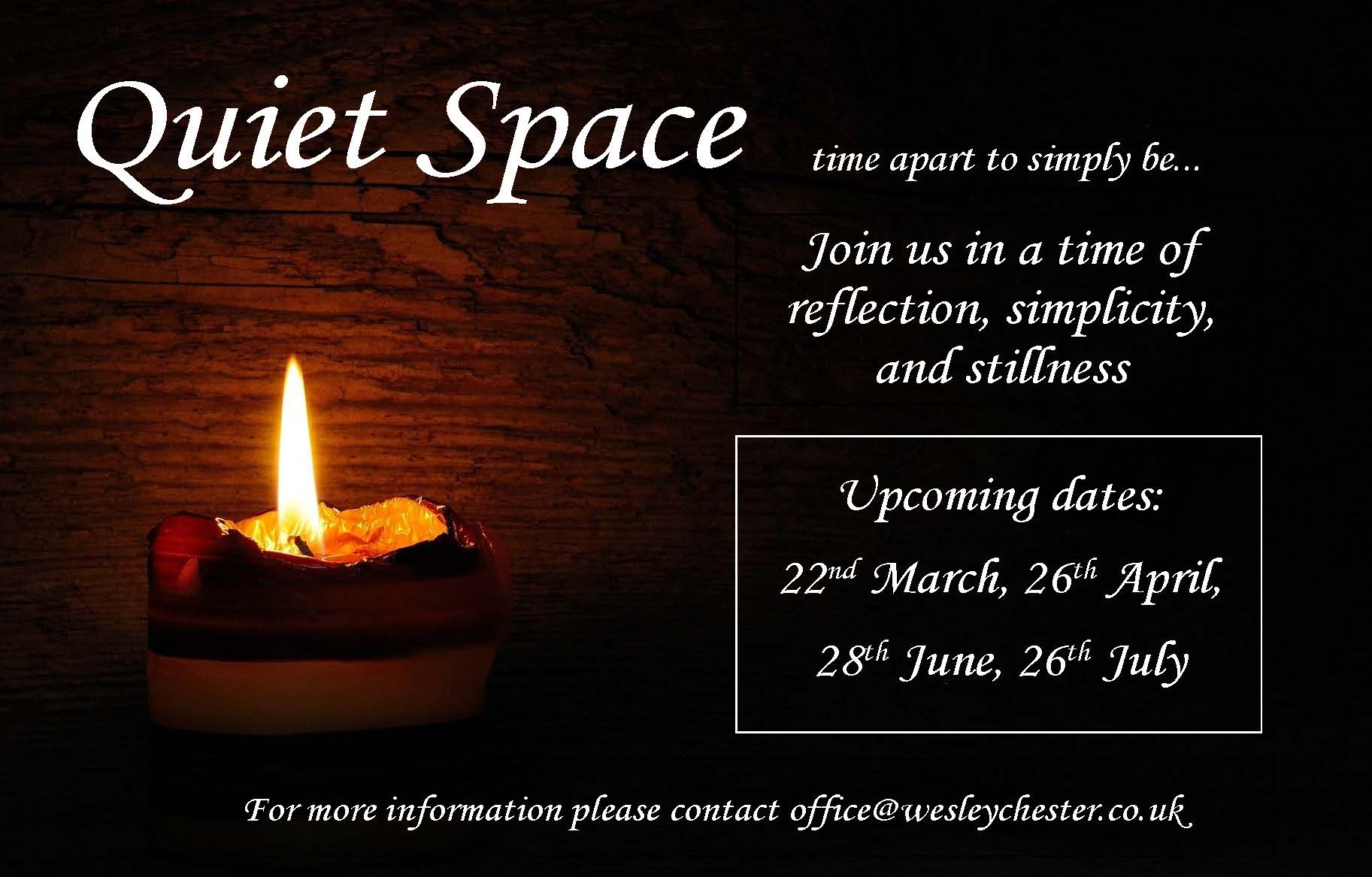 Quiet space is held on the 4th Sunday of the month at 7.30 pm.